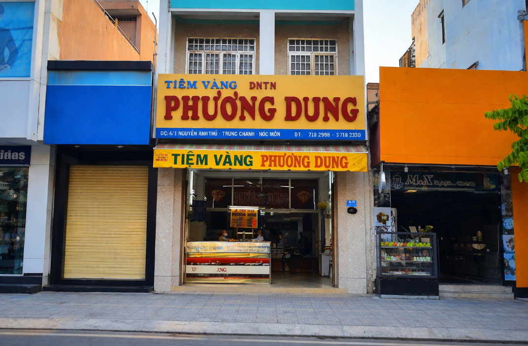 Tiệm Vàng Phương Dung tại khu vực ngoại thành Hồ Chí Minh, là một địa chỉ quen thuộc với người dân Hóc Môn. Cửa hàng có nhiều năm hoạt động trong lĩnh vực kinh doanh vàng trang sức, tạo dựng được uy tín nhờ chất lượng sản phẩm ổn định, giá cả minh bạch và phong cách phục vụ thân thiện. Đây không chỉ là nơi mua bán vàng mà còn là điểm đến đáng tin cậy cho khách hàng có nhu cầu tích trữ tài sản hoặc lựa chọn trang sức cho những dịp quan trọng.
