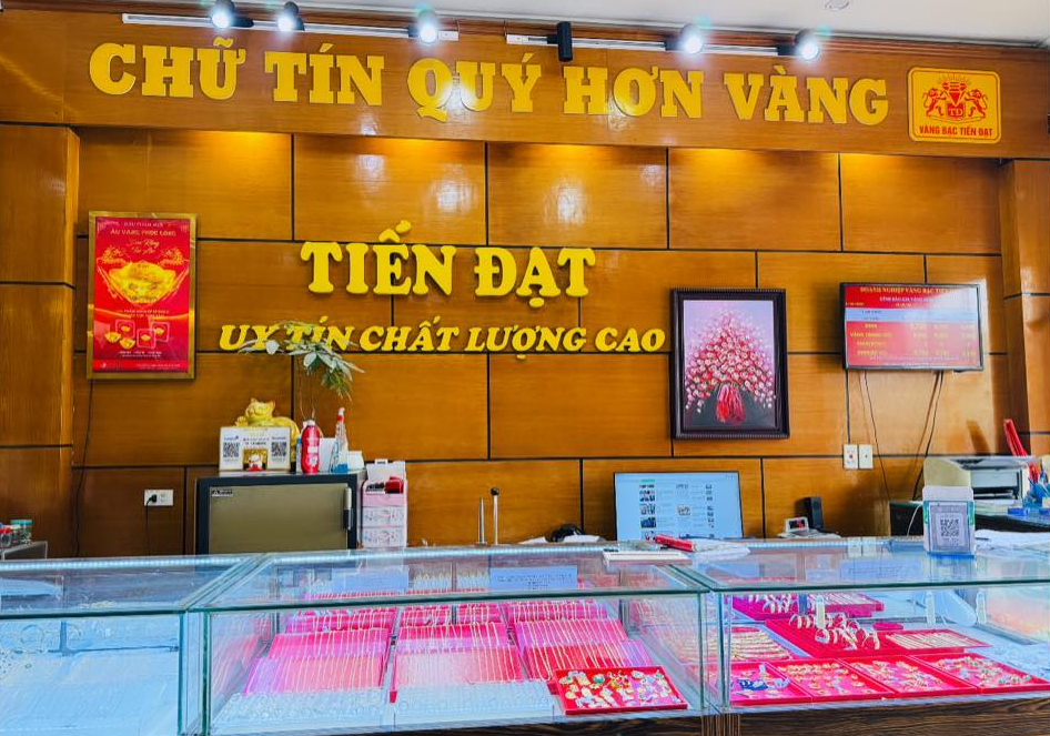 Vàng Tiến Đạt Kim Bài là một trong những cửa hàng vàng bạc lâu năm tại khu vực Thanh Oai – Hà Nội. Trải qua nhiều năm hoạt động, tiệm đã trở thành địa chỉ quen thuộc của người dân địa phương khi có nhu cầu mua bán vàng, trang sức cưới hỏi hay tích trữ tài sản.
